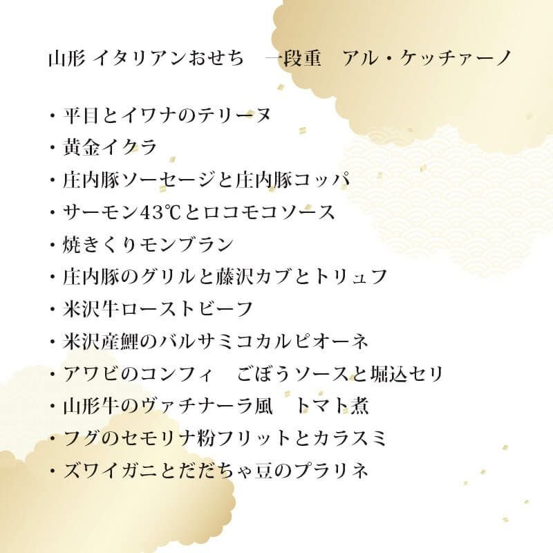 和風洋風山形の3つの名店が手がける清川屋オリジナルおせち。毎年大好評のイタリアンの名店「アル・ケッチァーノ」のおせち。山菜料亭「玉貴」の華やかな故郷のおせち、地元で愛される「西洋葡萄」のフレンチおせち。
