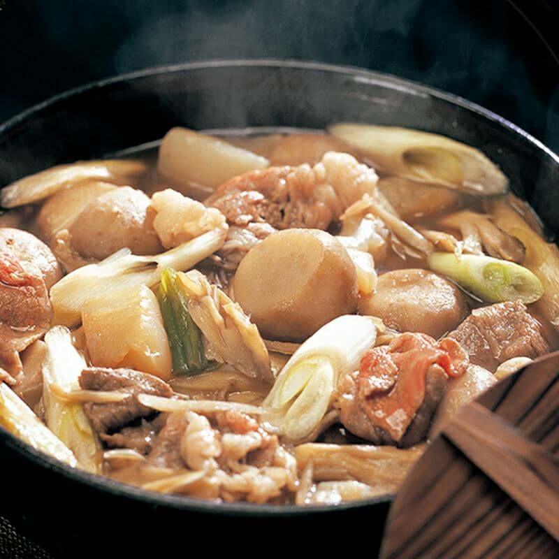 山形の芋煮といえば山形県民が熱くなる郷土料理。秋になると河原や公園にみんな集まりいも煮会が開催されます。大鍋に水を入れ里芋とこんにゃくが入るのは共通ですが、地域によりレシピが異なります。牛肉・醤油味の内陸風は調味料の砂糖、お酒、醤油のバランスが大事です。豚肉・味噌味の庄内風は煮る前にも少し味噌を入れておくのがおすすめです。