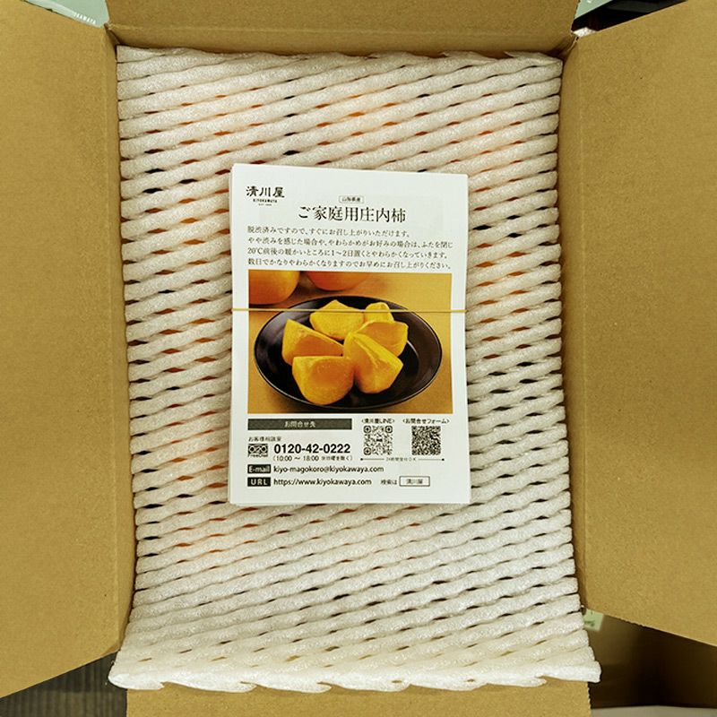 もちろん、庄内柿の名産地、松ヶ岡地区で育てられた逸品柿。味は正規品と変わりありません。ご家庭で、秋を代表する味覚のおいしさを味わってみませんか?