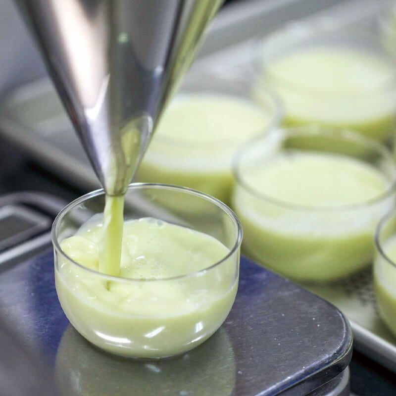 ◆入社前から大好きだった「だだっ子プリン」が復活して嬉しいです!まさか自分が作る側になるなんて…とびっくりしています。やさしいだだちゃ豆の味と香り。上層と下層で口当たりが変わるところがおいしいポイントです(製造スタッフ三浦)