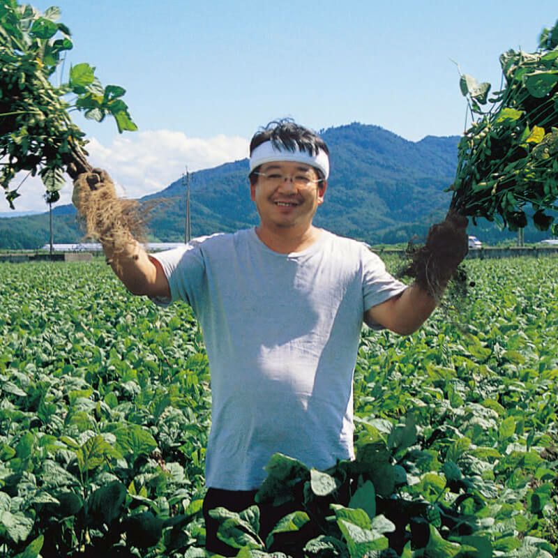 白山では、美味しいだだちゃ豆を作る家は、その家の屋号を冠した豆が通り名として知られてきました。7代目甚兵衛の屋号を継ぐ阿部金一さんは、豆作り40年のベテラン。