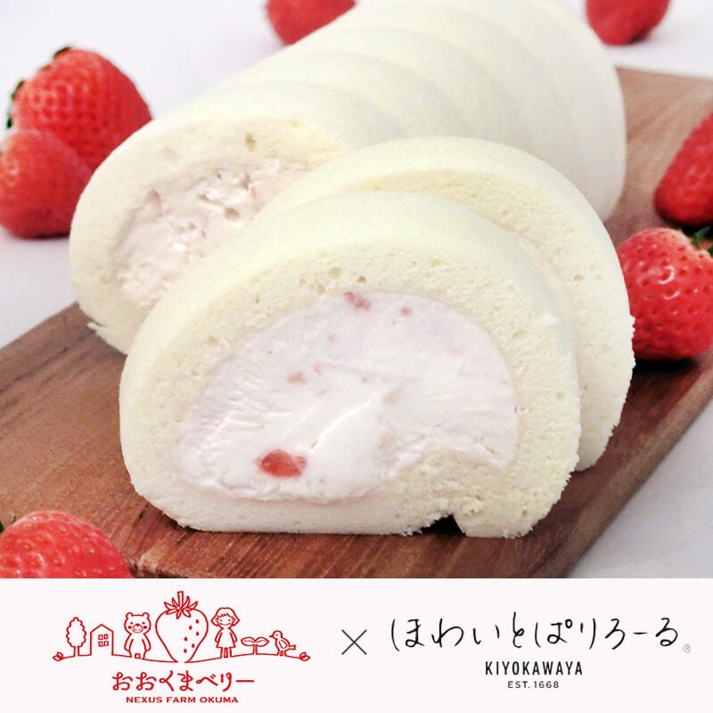 シリーズ累計50万本突破!長年愛され続けている当店人気No.1スイーツ「ほわいとぱりろーる」が、福島県大熊町の復興のシンボルである特産いちご「おおくまベリー」と出会いました。