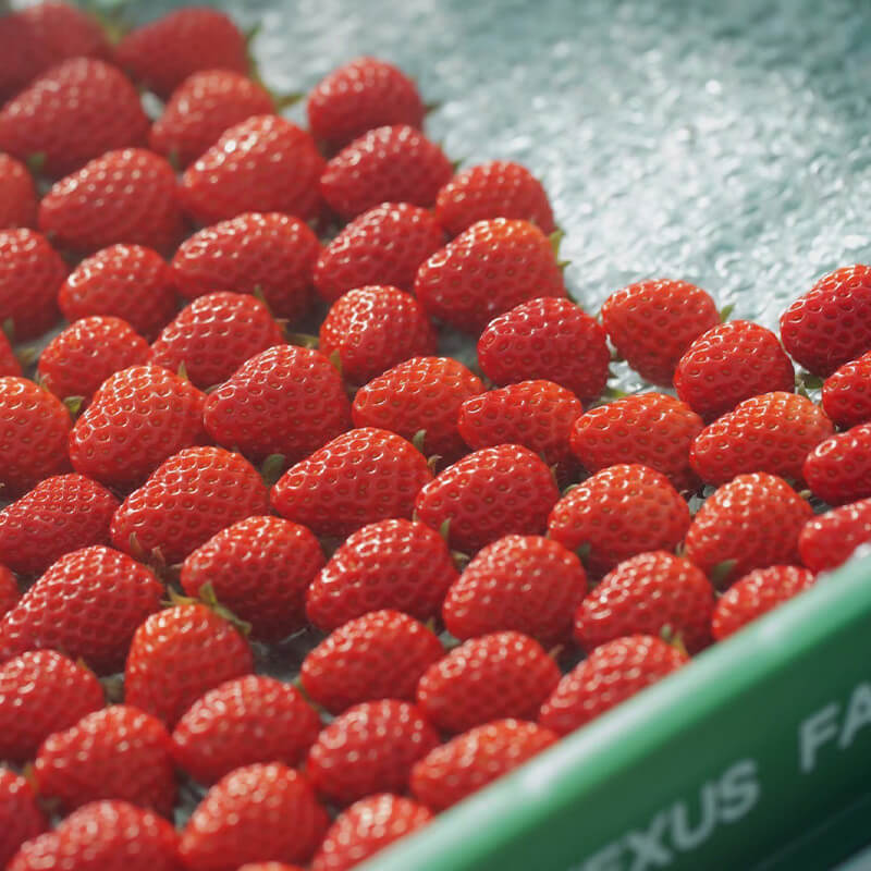ネクサスファームおおくまでは最新鋭の施設で放射性物質の検査を徹底。一粒一粒、重さや形を厳選し、F-GAP認証も取得した「安心・安全」な最高品質のいちごを栽培しています。