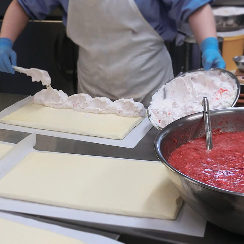 繊細な風味を楽しむため、必ず冷蔵庫で7時間ほどじっくり解凍してください。スポンジのもちっとした食感と、ミルキーなコクと甘酸っぱいいちごのハーモニーの生クリームを美味しくお召し上がりいただけます。