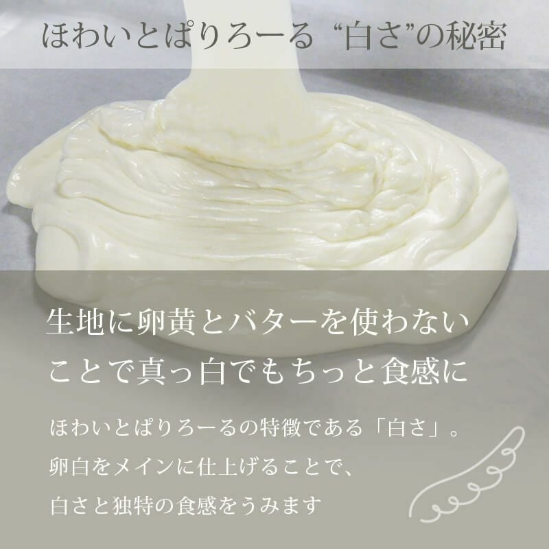当店人気No.1スイーツの「ほわいとぱりろーる」。シリーズ累計50万本の販売実績を誇る、長年愛され続けているロールケーキです。