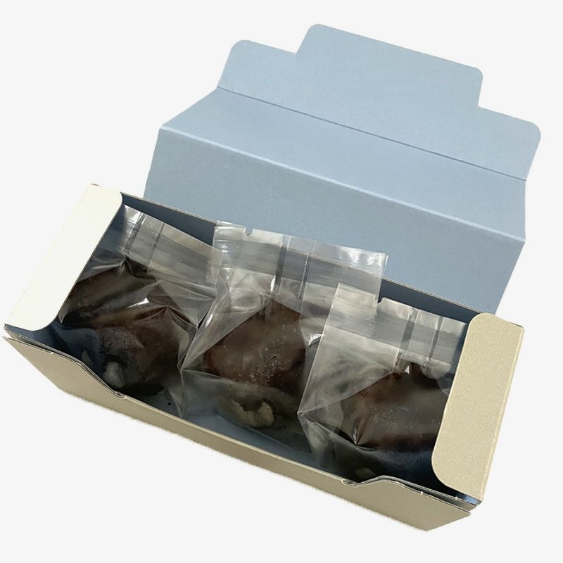 許してちょんまげで人気のカヌレを、ちょっとしたギフトや手土産で使っていただけるようパッケージも可愛らしい3個入規格にしました!