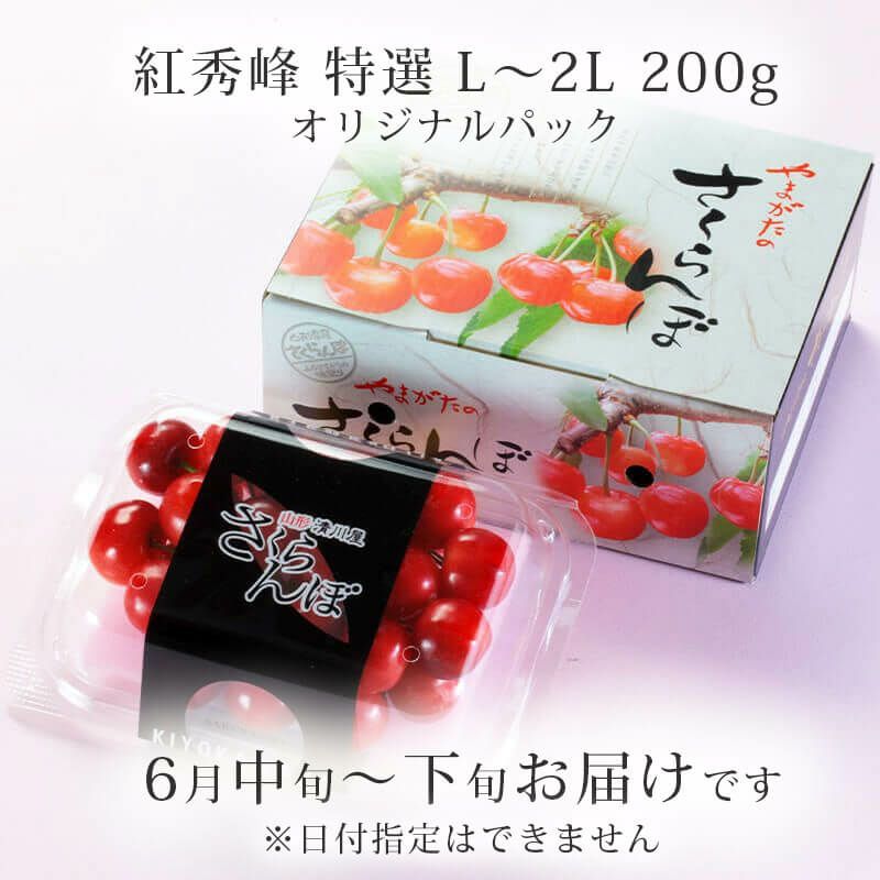パリッとした果肉、糖度が高く酸味が少ない、際立つ甘さが特徴の「紅秀峰(べにしゅうほう)」。佐藤錦より張りがあり日持ちがすると人気急上昇の紅秀峰を今年の清川屋ギフトさくらんぼ好適品種としてオススメいたします。山形の信頼できる生産者の農園で育てられた、Lサイズ以上の高品質な大粒紅秀峰を全国へ発送。清川屋ならではの情報も更新して参ります。