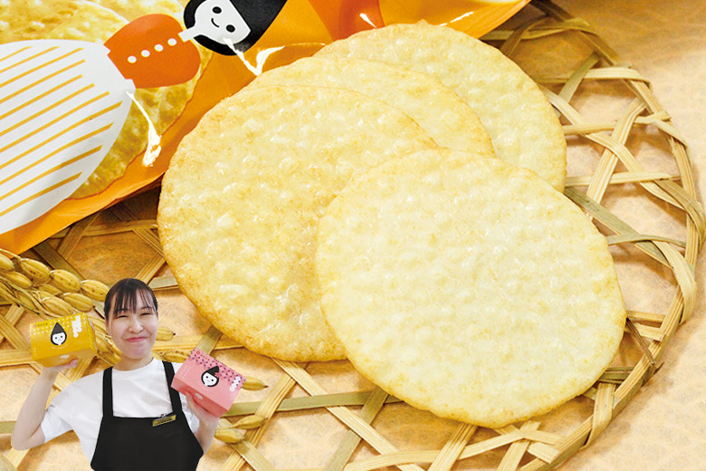 お米の仕入れ、精米、生地作り、乾燥、焼き、味付け、包装まですべて自社工場で行っています。