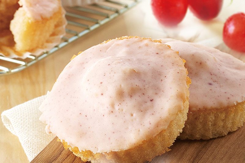 さくらんぼの果汁を贅沢に生地に混ぜ込み、しっとりとマドレーヌを焼き上げ、更に自家製さくらんぼチョコレートでコーティングしました。