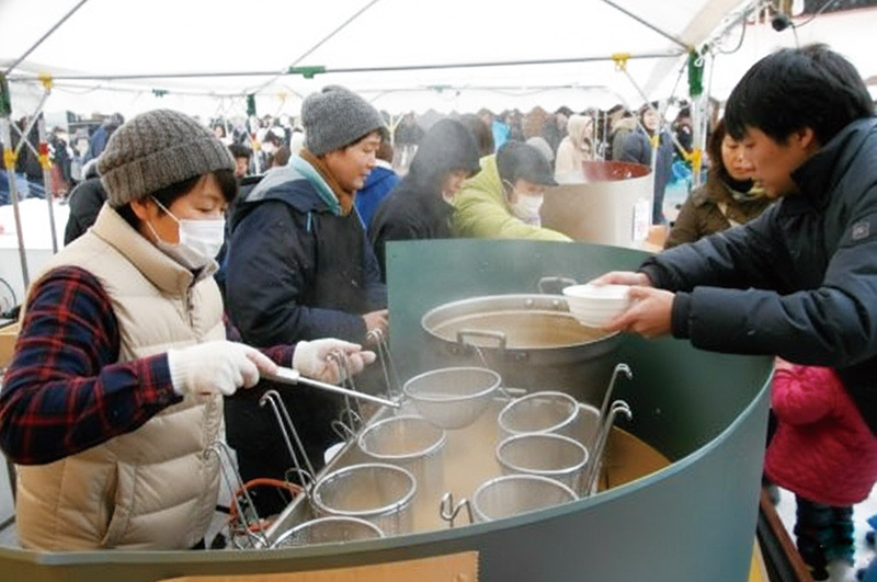 屋外で湯気が立ち上る中で食べる寒鱈汁はまさに格別な美味しさです。