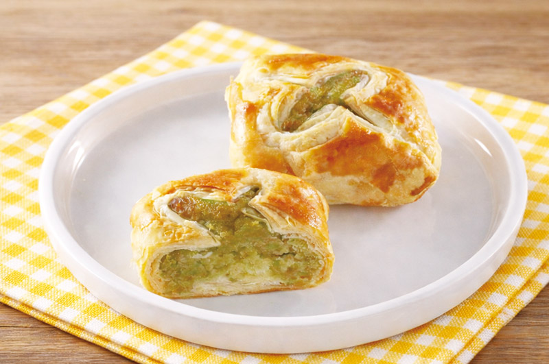 フレッシュバター100%のしっとり食感のパイ。中には風味豊かなだだちゃ豆の餡がた~っぷりと入っていて、甘さ控えめで飽きのこない味わいです!