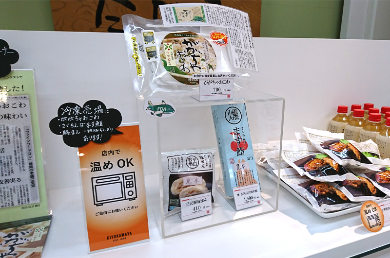 そして店内では、レンジで温めOKの商品をすぐにお召し上がりいただけるように、電子レンジをご用意しております。ちょっと小腹が空いた時や、「この商品、どういう味か気になる…!」と思った際にその場で買って試して、気に入ったらお土産に…というお買い物の仕方も可能なんです(*´艸`*)