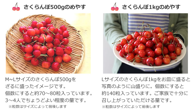 さくらんぼのサイズに当てはめると2L以上3L未満、といったところでしょうか。