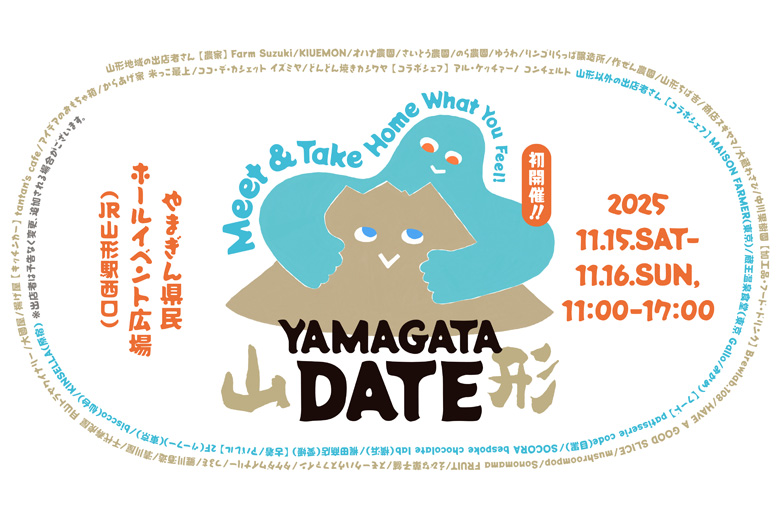 2025年11月15日(土)・16日(日)の2日間、JR山形駅西口のやまぎん県民ホールイベント広場にて、山形の旬の果物や手しごと、音楽やアートが集まるイベント。その名も「YAMAGATA DATE(ヤマガタデート)」です。